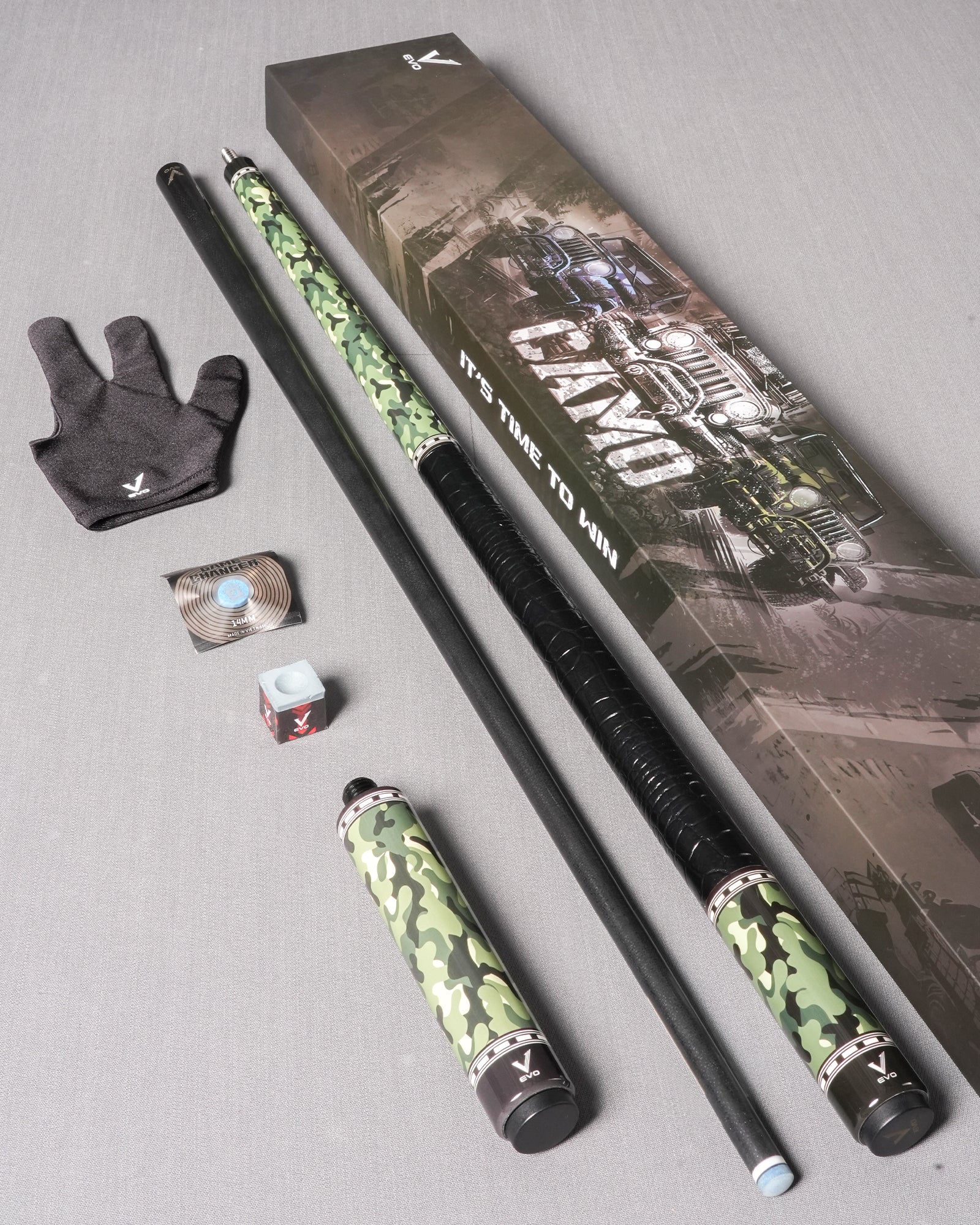 COMPLETE PLAYER KIT Premium playing cue + 6″ extension + Time Tip + glove + chalk. All essentials for your game in one package. SPECIFICATIONS:SHAFT:- Length: 29″- Material: Glass Fiber- Taper: Hybrid Pro TaperTIP:- Type: TIME 3 Standard- Tip Diameter: 12.5 mmCUE BUTT:- Length: 29″- Material: Carbon + Glass fiber- Grip: Synthetic Leather Wrap- Full Cue Weight: 19-19.5oz- Joint: 3/8-10 by Stainless steel with ultra stiffness – Joint protector: Included- Weight Adjustment System: Supported….