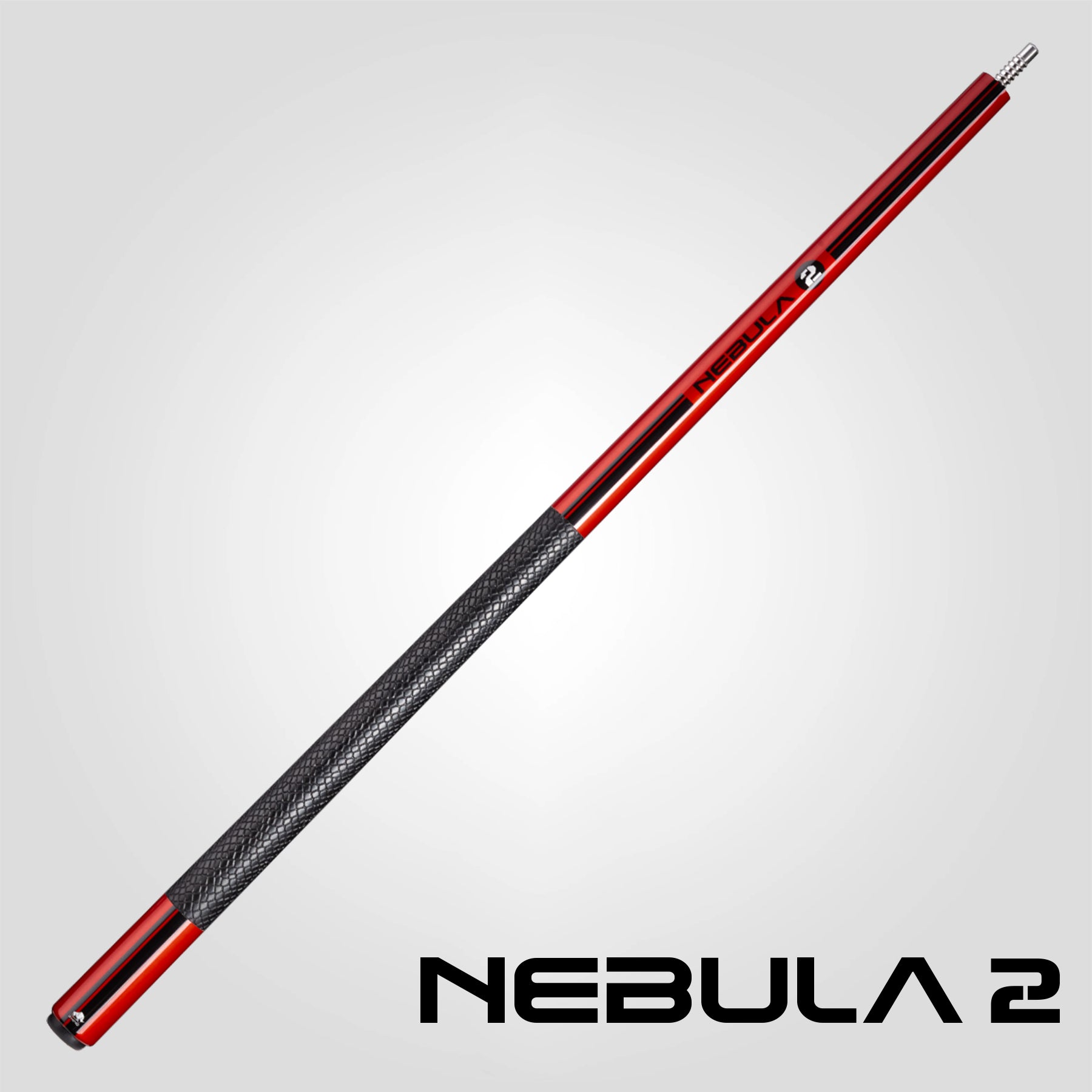 Nebula 2 series pool cue in striking Crimson Red with sport wrap grip. Features advanced carbon composite technology for consistent deflection and maximum spin transfer.